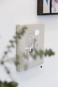 Each one-off piece is a digital collage printed onto 100% linen, stretched and then further customised with paint, embroidery and beading. Linen, the soft tactile fabric we use for our blankets and bedding, was the perfect canvas. To extend the theme further, Macleod has created a set of pillow cases covered in dreamy botanic-inspired illustrations, printed and produced locally featuring embroidered elements, available in a limited edition of 50.